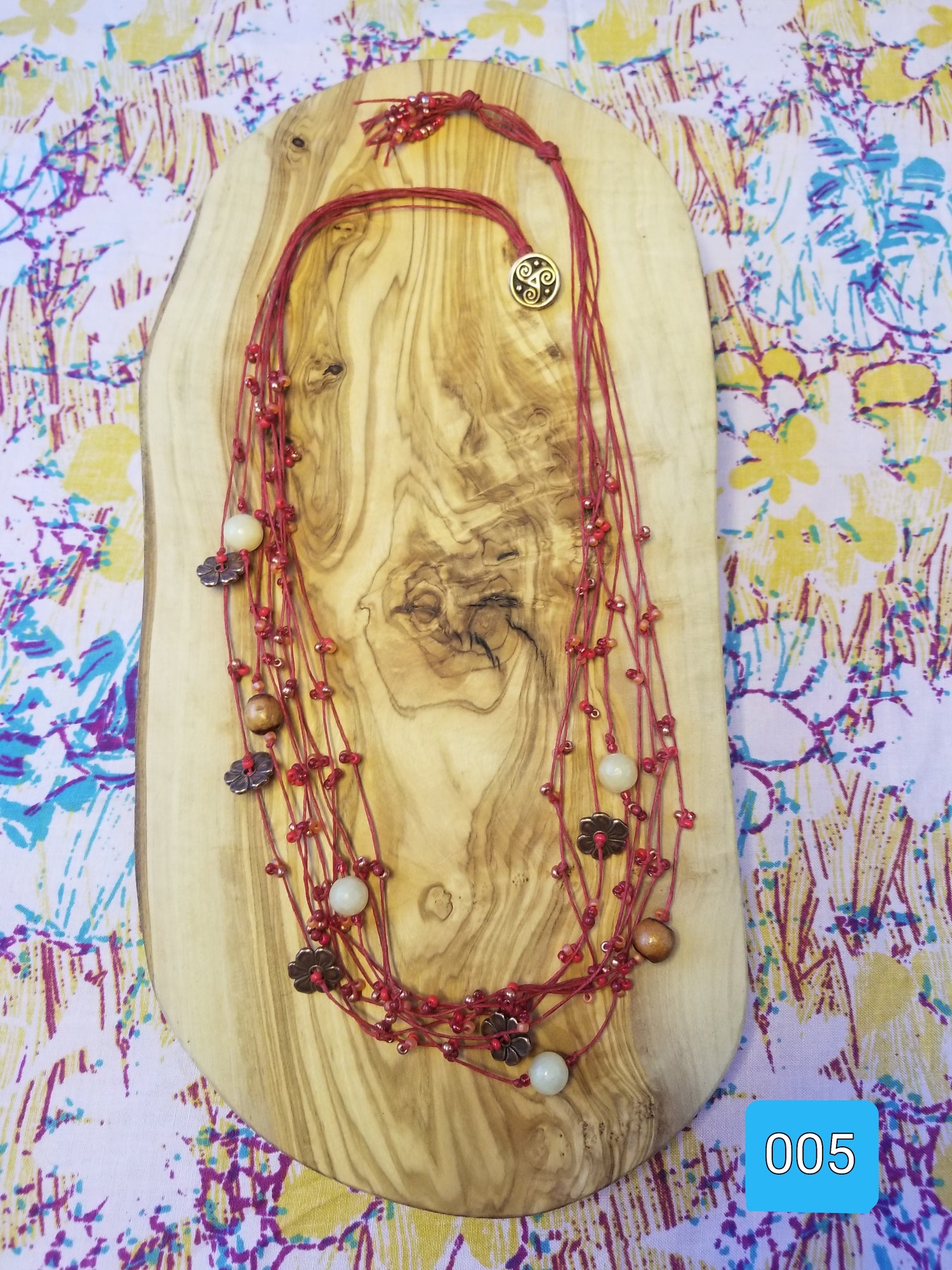 Red Multi-Strand Neckalce, Wood Accents, 24"